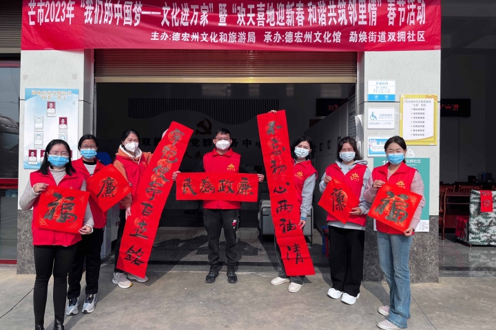 2023-11-23德宏州文化馆(州非遗中心)开展“我的中国梦-文化进万家”群众文化活动在春节即将来临之际,为营造欢乐、喜庆、祥和、文明的节日氛围,德宏州文化馆(州非遗中心)...